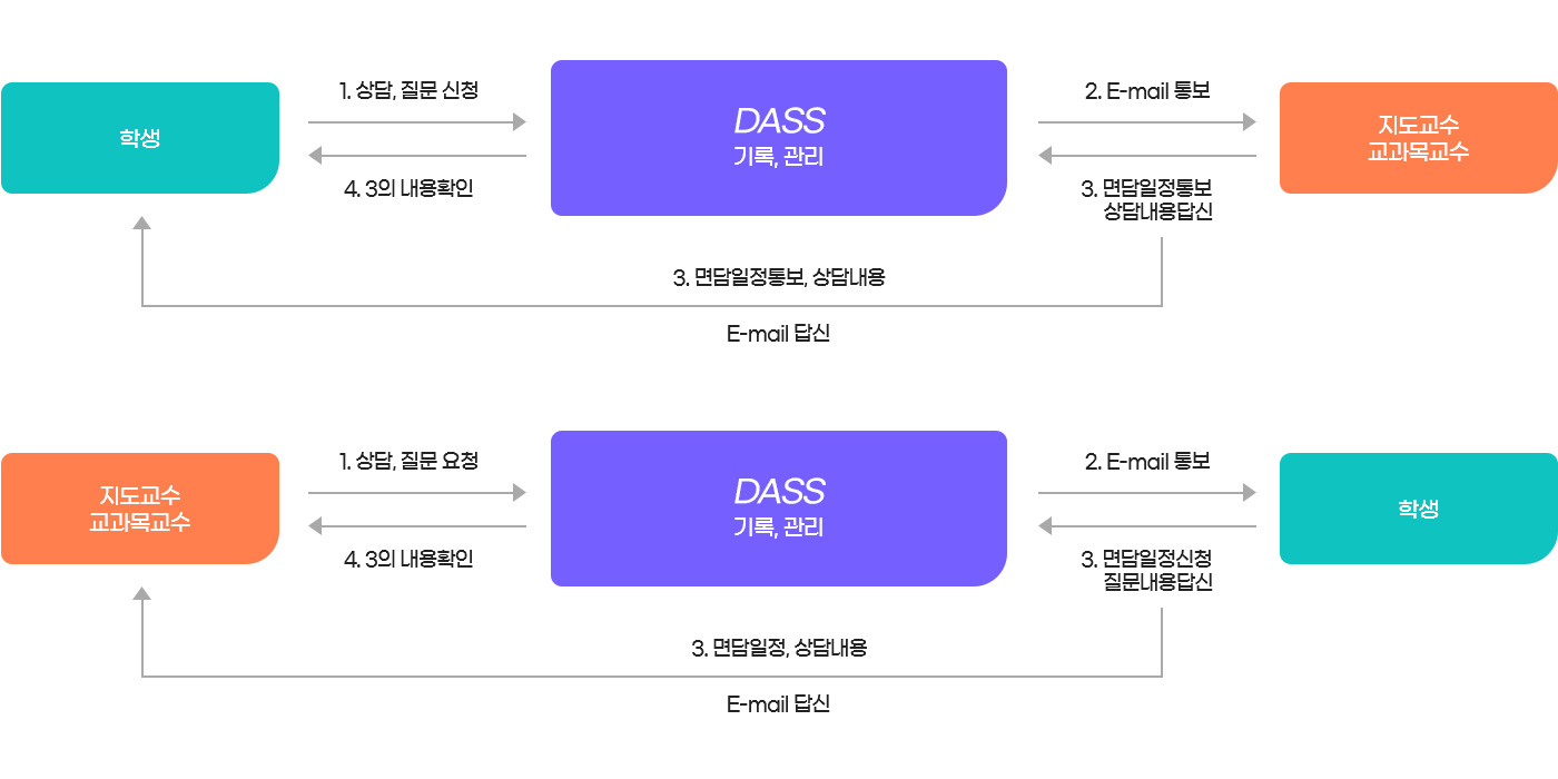 화학공학전공의 상담과 면담은 아래 그림과 같이 DASS를 중심으로 수행된다.