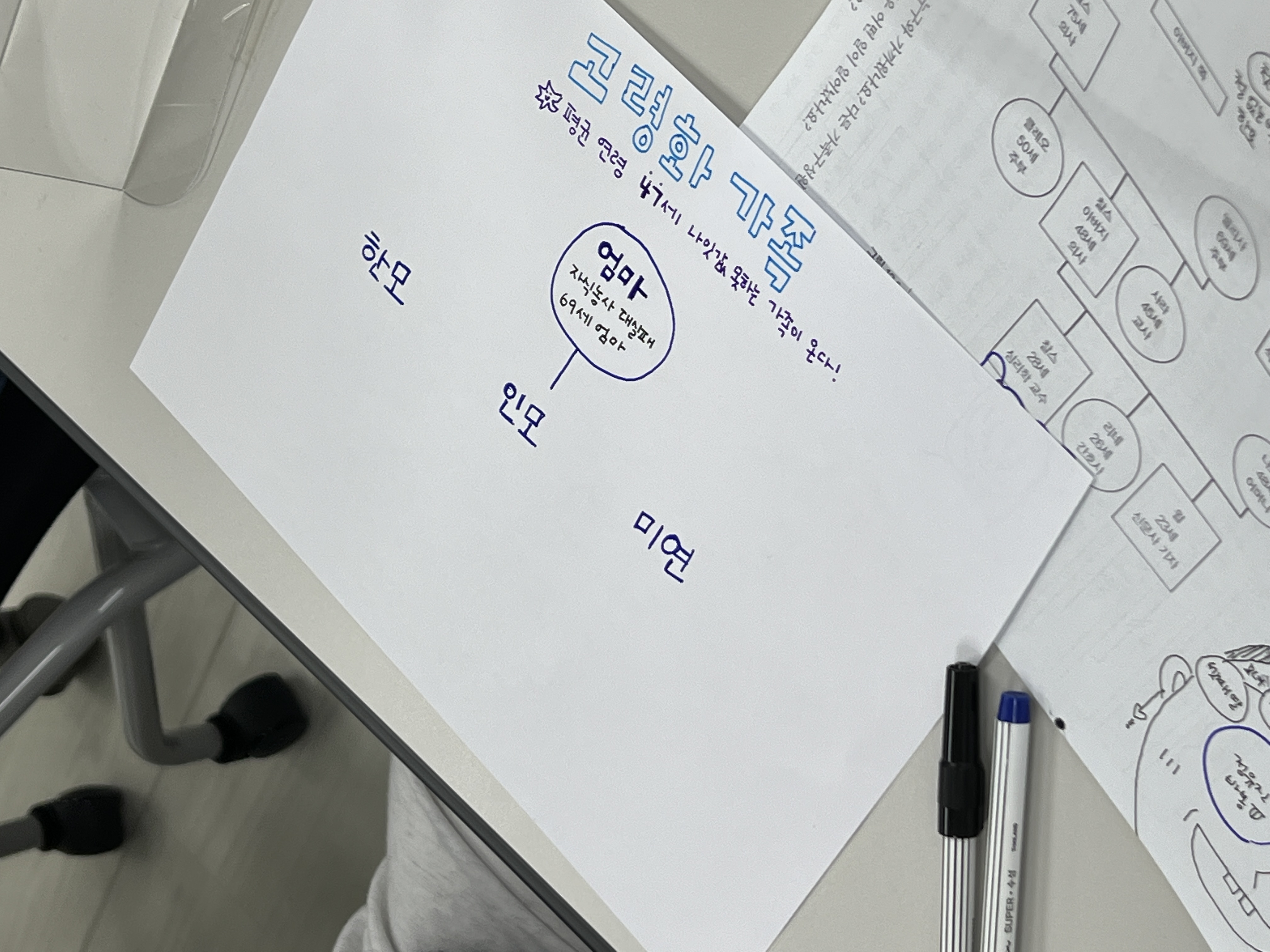 영화 ‘고령화가족’을 시청하면서 가계도를 그려보는 활동을 진행하였습니다
