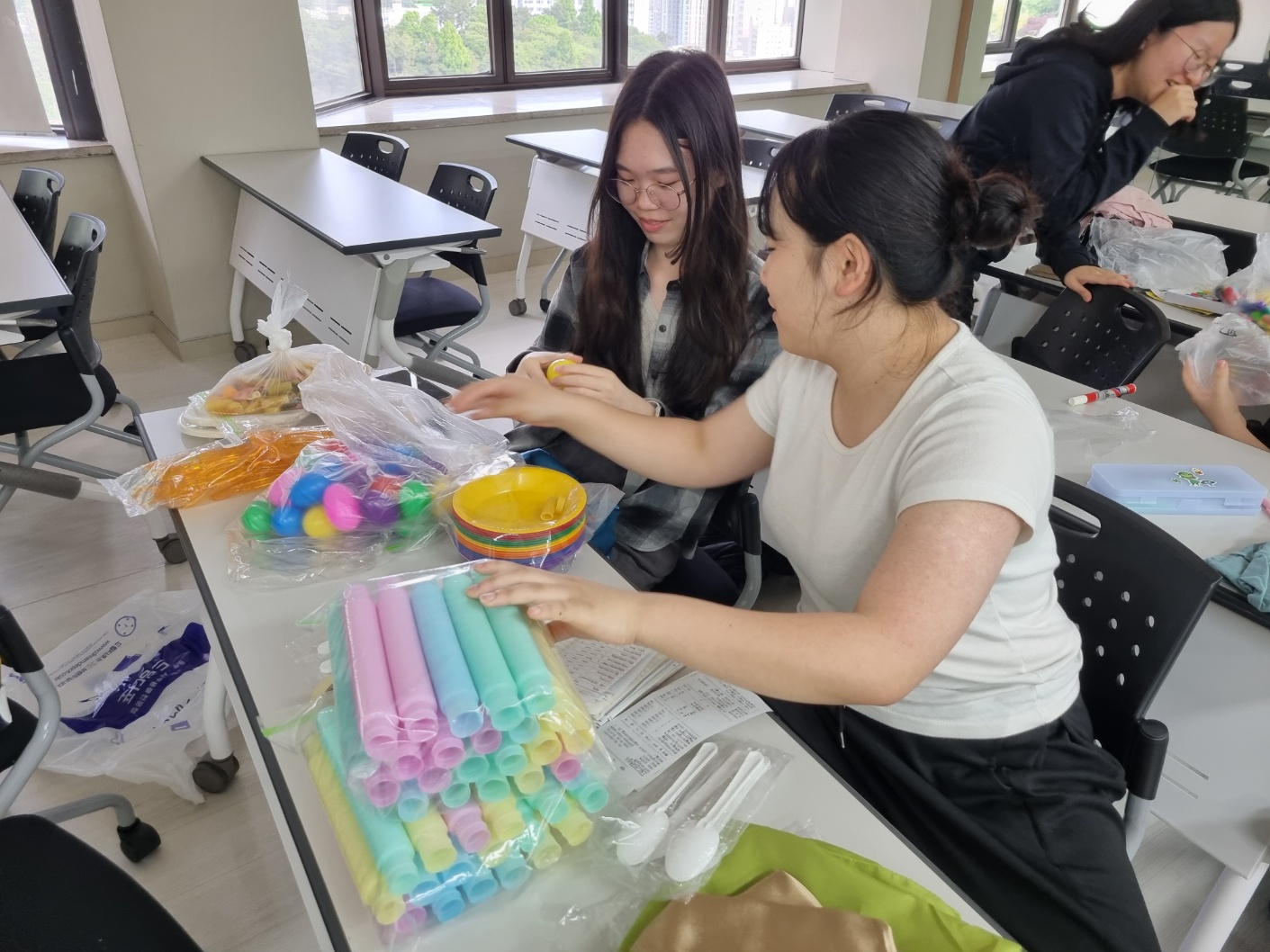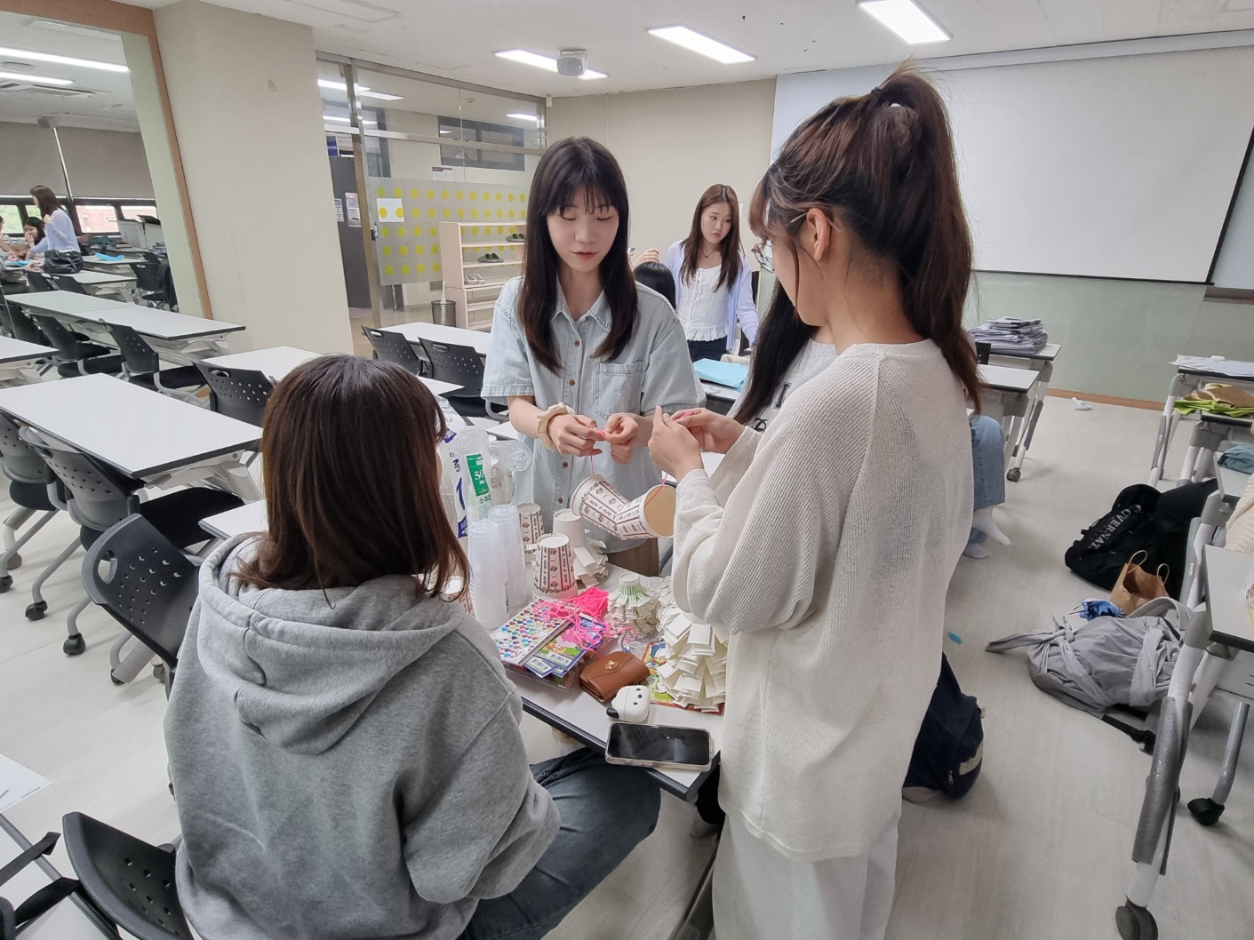 안내가 끝난 후 모둠별로 회의를 진행하며 이전 활동을 통해 계획한 자료 및 활동 동선 점검하기, 활동 과정에서 필요한 교구 만들기 등의 활동을 이어나갔습니다.