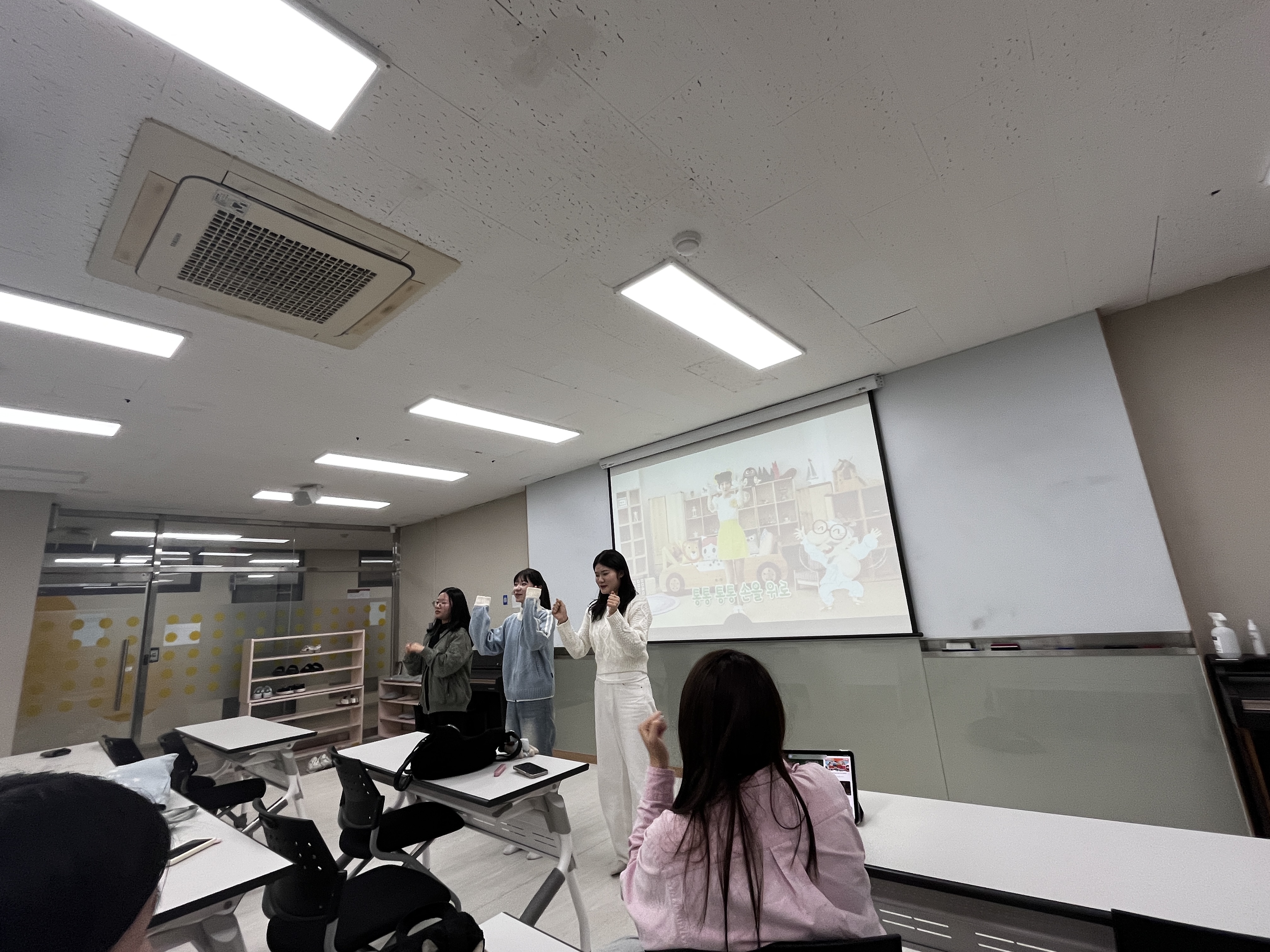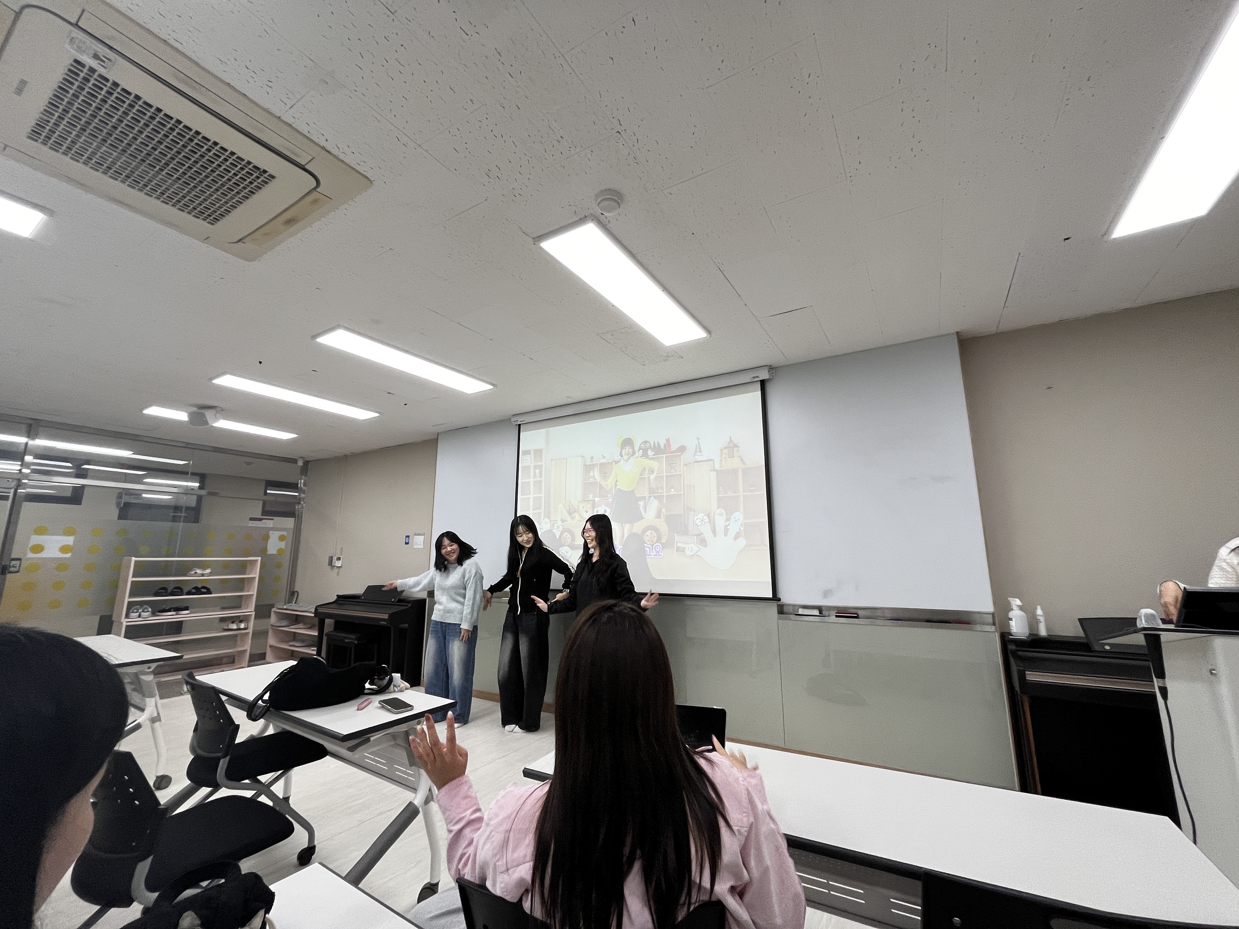 각 조마다 손유희를 하나씩 선택한 후, 다른 부원들 앞에서 먼저 시범을 보여주고, 부원 모두가 함께 손유희를 해보는 방식으로 진행하였습니다.