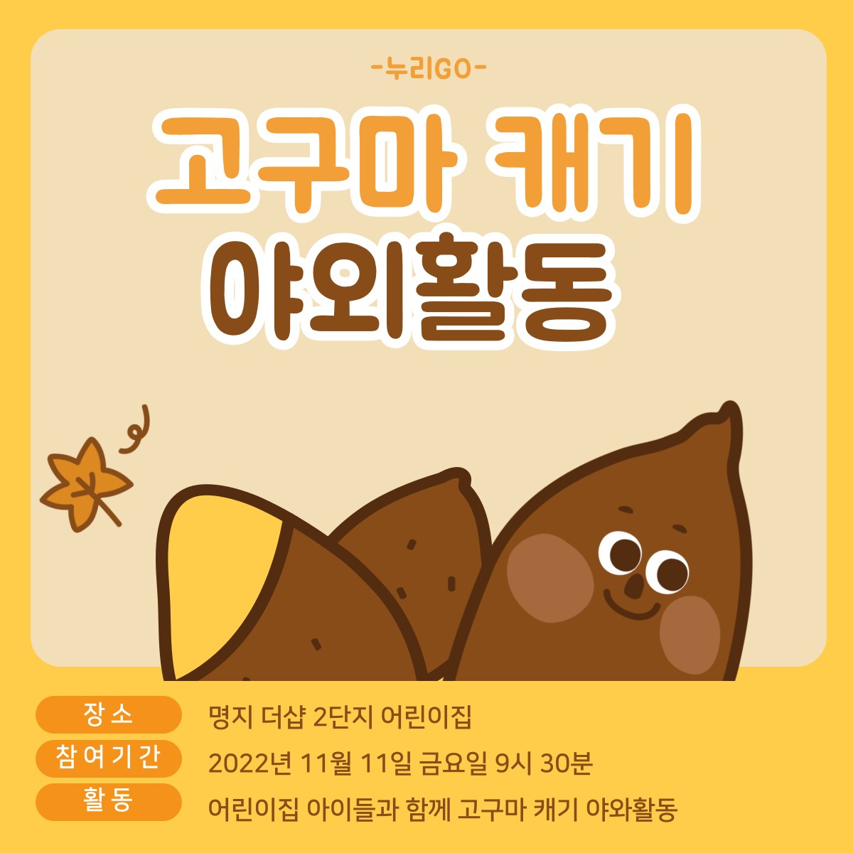 11월 11일 (금) 고구마 캐기 봉사활동 가기!!!??????
