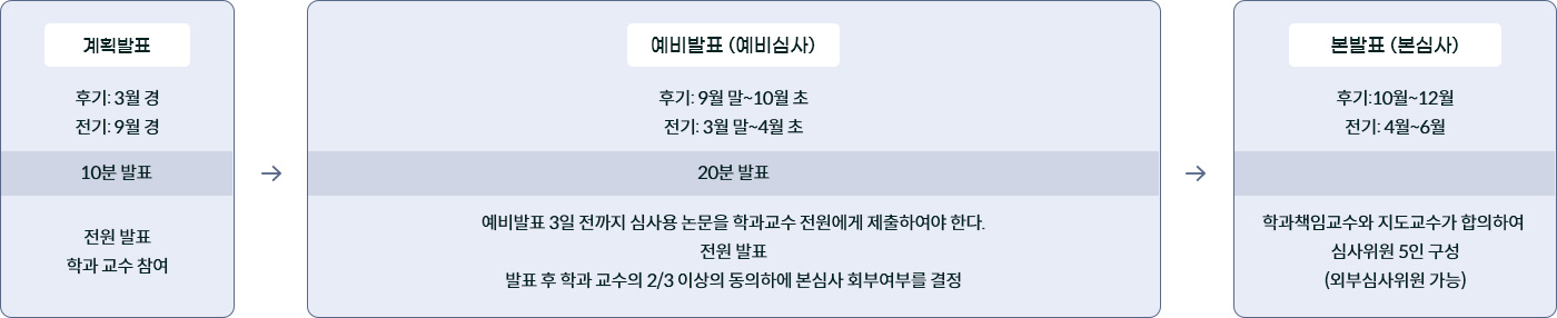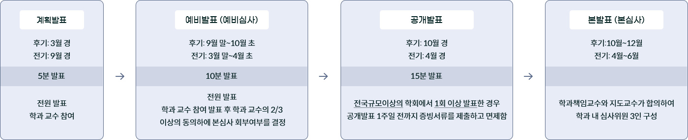 - 논문연구 2학점 이상, 통합과정은 논문연구 4학점 이상 취득