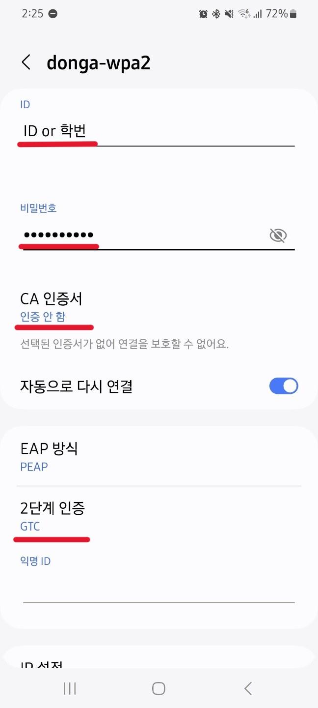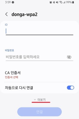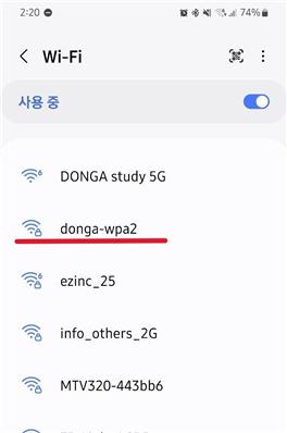 | 안드로이드 스마트폰 donga-wpa2 Wi-Fi 설정 방법입니다 | |